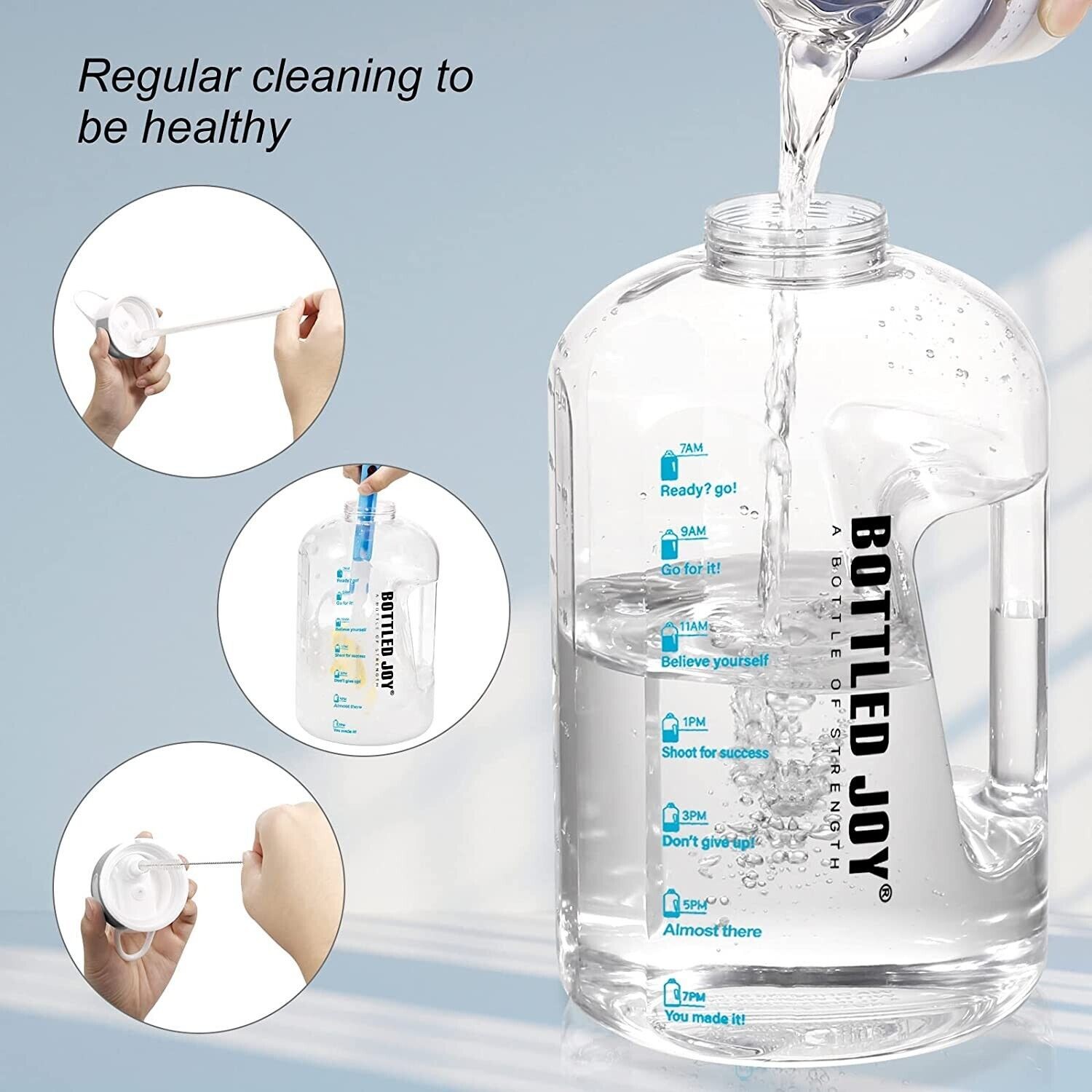 Half Gallon 64 OZ Motivational Water Bottle with Straw Time Marker BPA Free