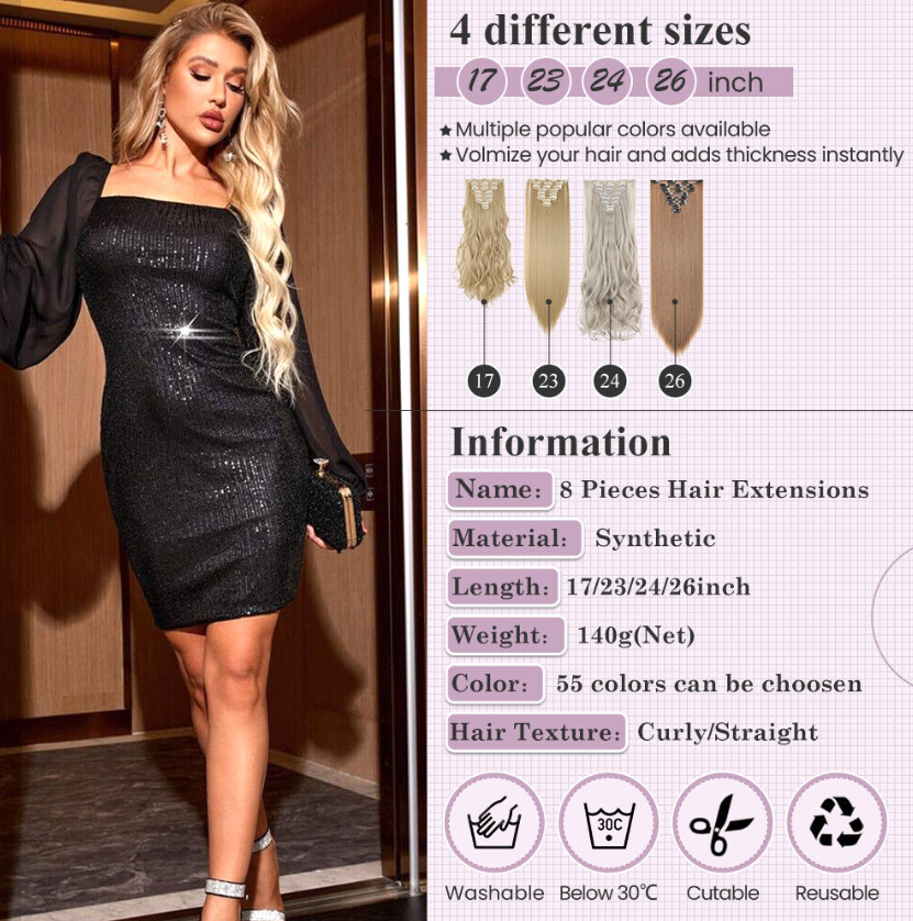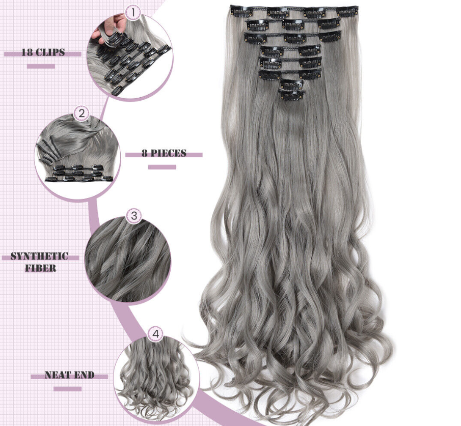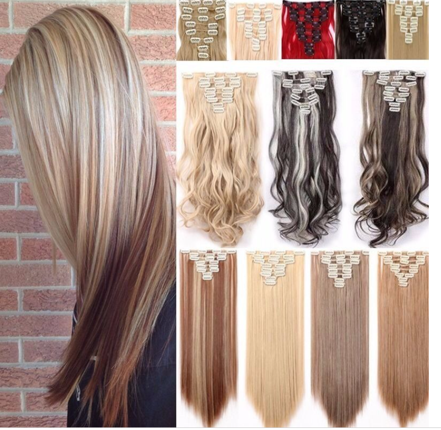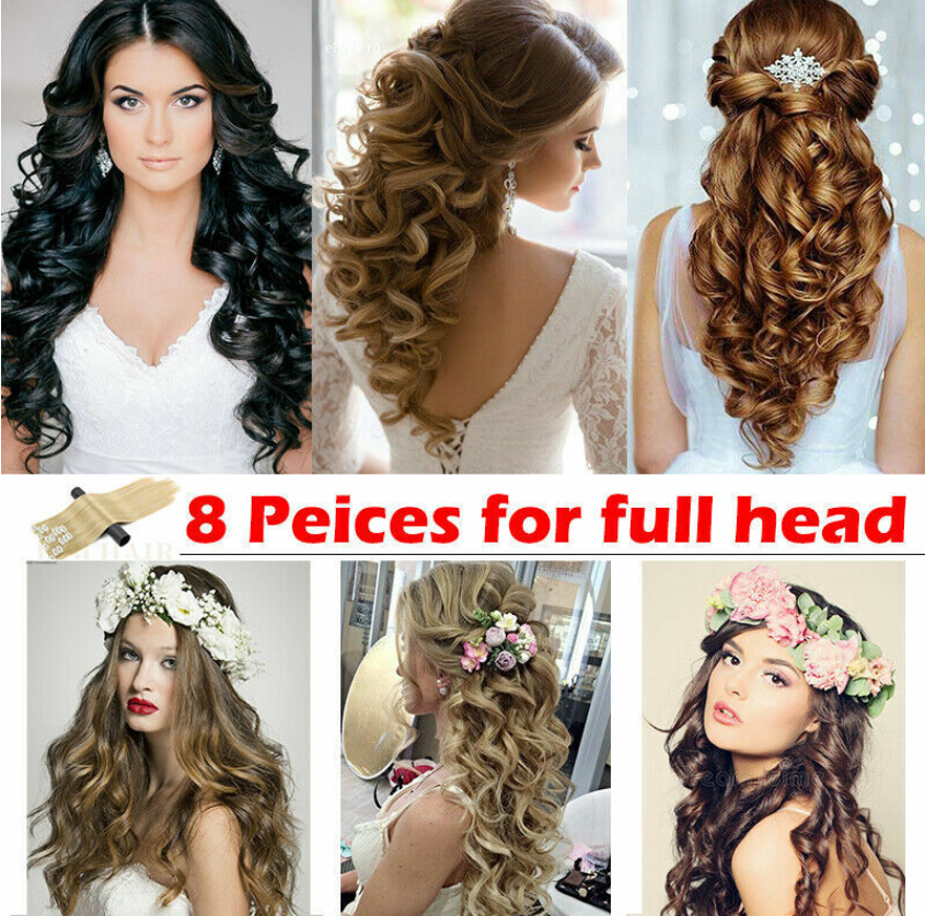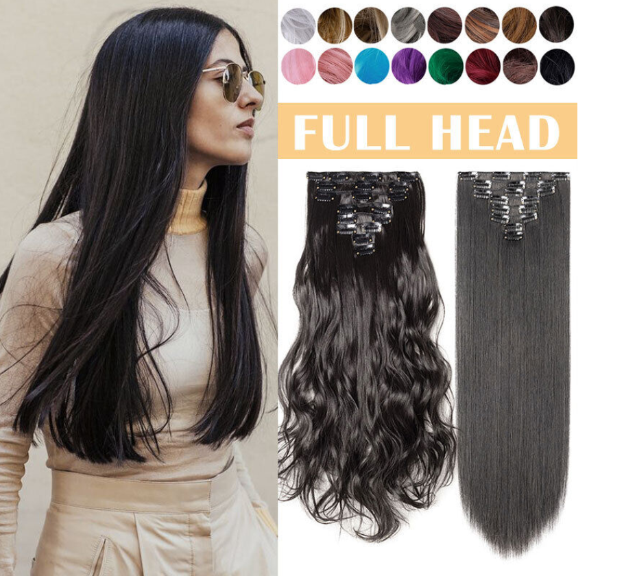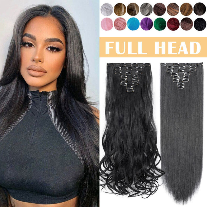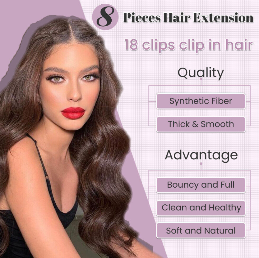100% Natural Thick Clip in Hair Extensions 8 Pieces Full Head Long As Human Hair
