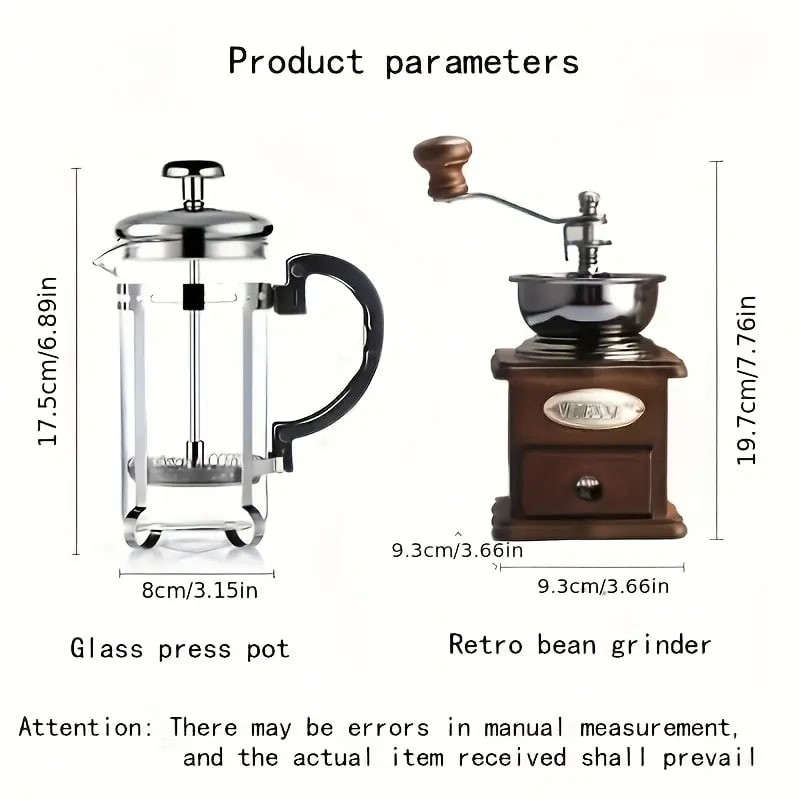 1set Wooden Classic Vintage Mini Manual Bean Grinder Press Pot Set Kitchen Coffee Utensils Home Handheld Coffee Bean Grinder Gift Box Set Of Boutique Products