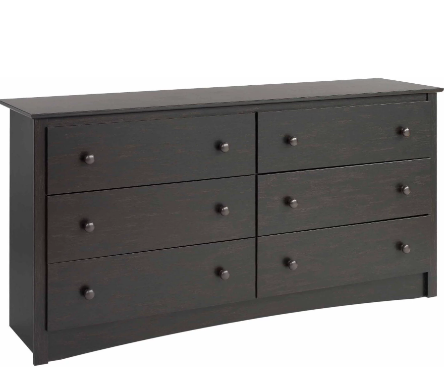 6-drawer wooden double dressing table 16 "x 59" x 29 ", Washed Black