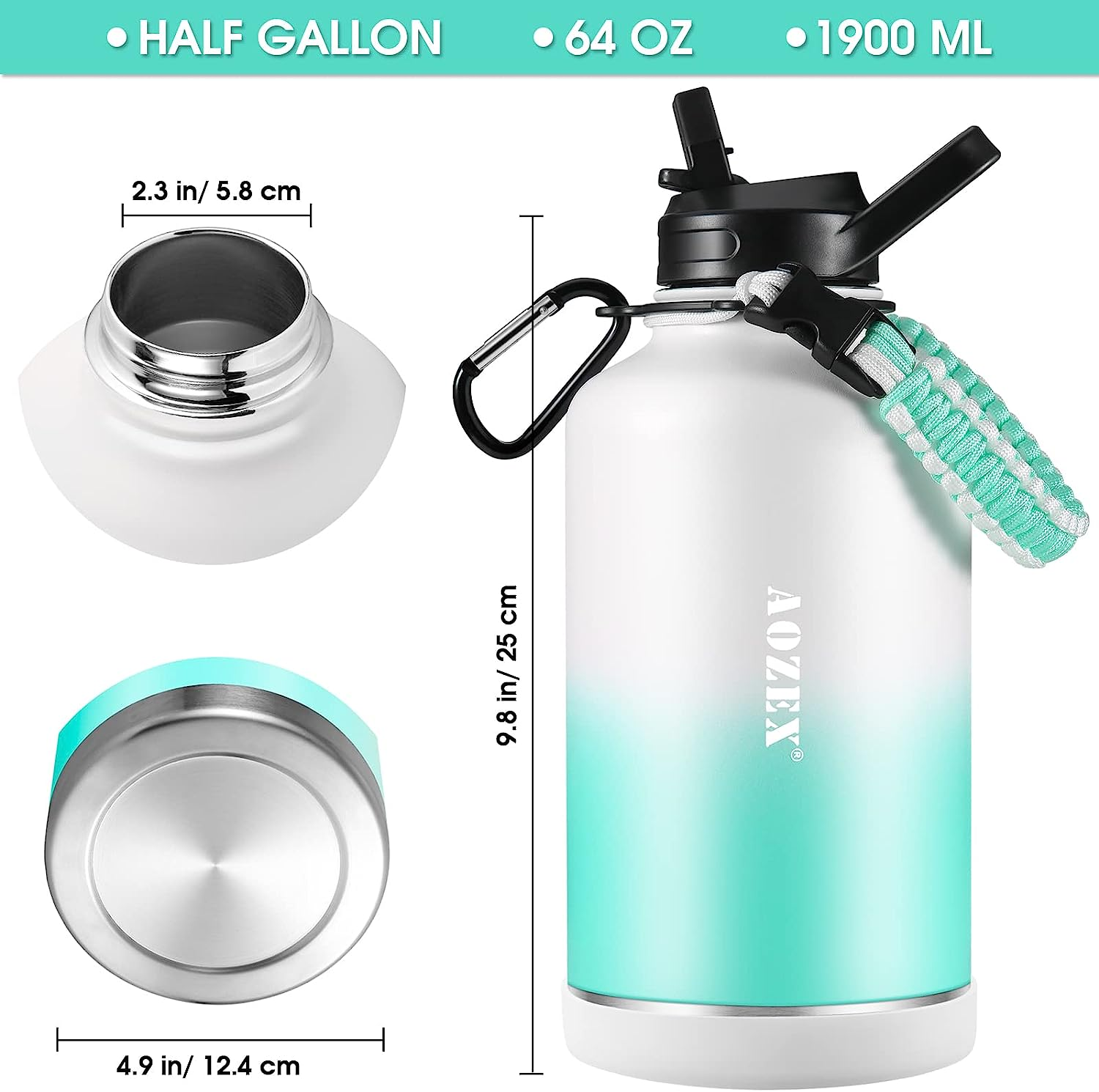 BOTTLE BOTTLE Insulated Water Bottle 64 oz with Straw and Dual-use Lid Half G...