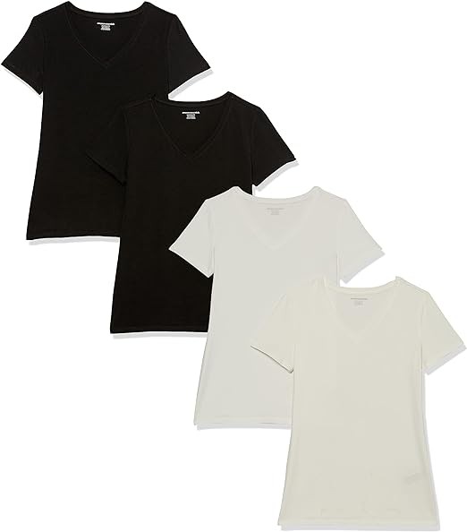 JD.GLOBAL Essentials Women's Classic-Fit Short-Sleeve V-Neck T-Shirt, Multipacks