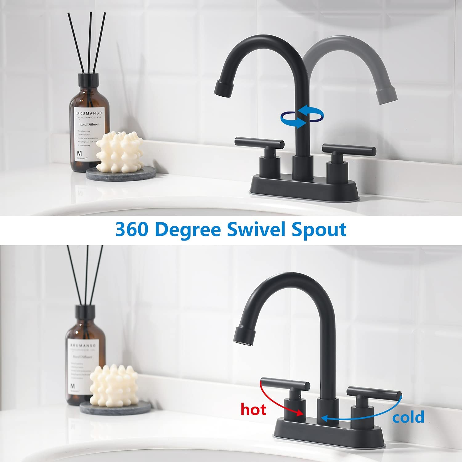 Black Bathroom Faucets, 2 Handle Bathroom Sink Faucet, 4-Inch Centerset Bathroom