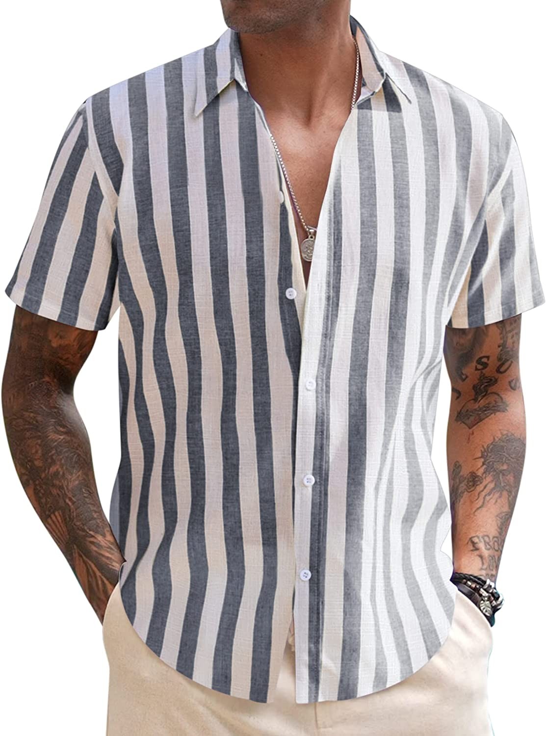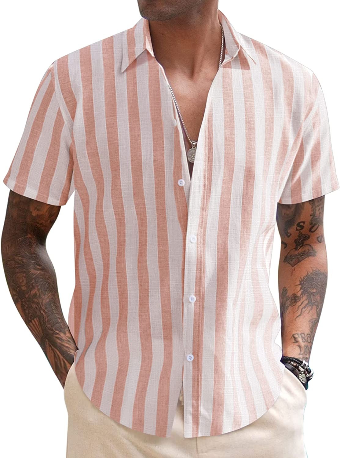 COOFANDY Men's Linen Casual Short Sleeve Shirts Button Down Summer Beach Shirt