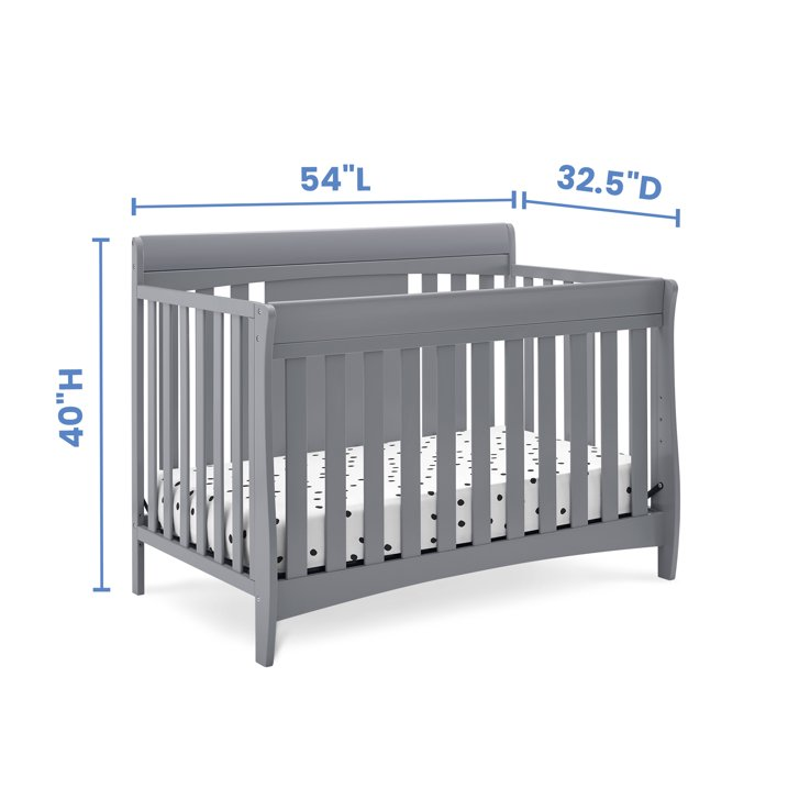 • TIMELESS DESIGN: Crib features an updated sleigh-style silhouette, durable finish and intricate headboard with varying size slats for a timeless look