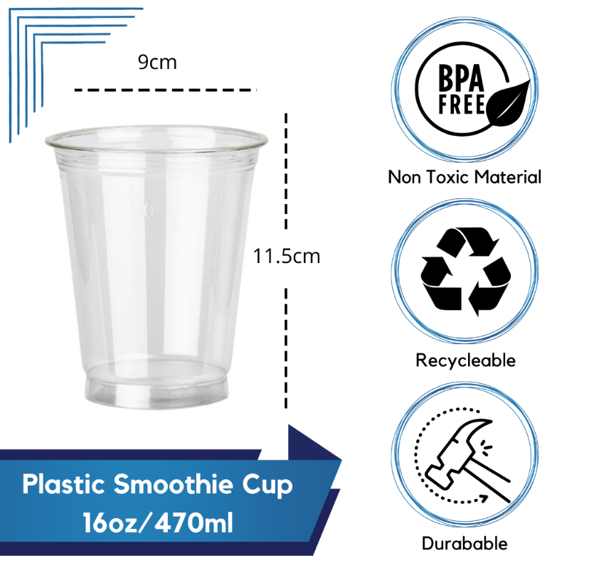 16oz (470cc) Clear Smoothie Cups and Domed or Flat Lids