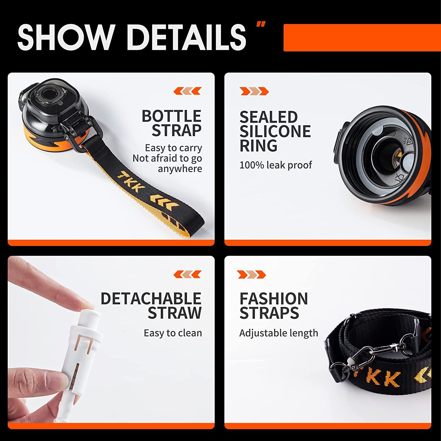 BOTTLE BOTTLE Insulated Water Bottle 64 oz with Straw and Dual-use Lid Half G...