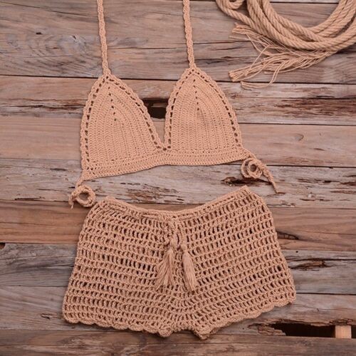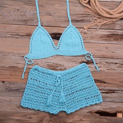 Handmade Crochet Two Piece Set Women's Summer Beach Bikini Sexy Swimsuit Outfit