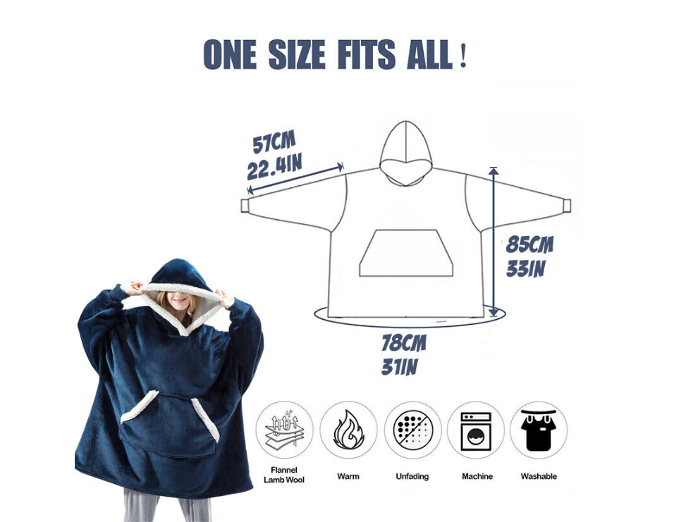 Hoodie Blanket Oversized Adults Kids Chunky Heavy Sherpa Fleece Plush Cosy Warm