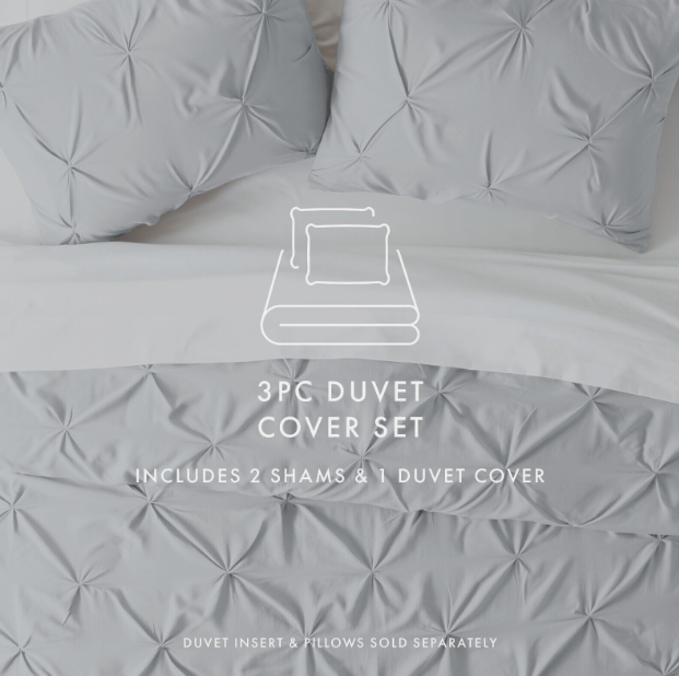 Kaycie Gray Fashion Pinch Pleat Duvet Cover Set - Pintuck Design