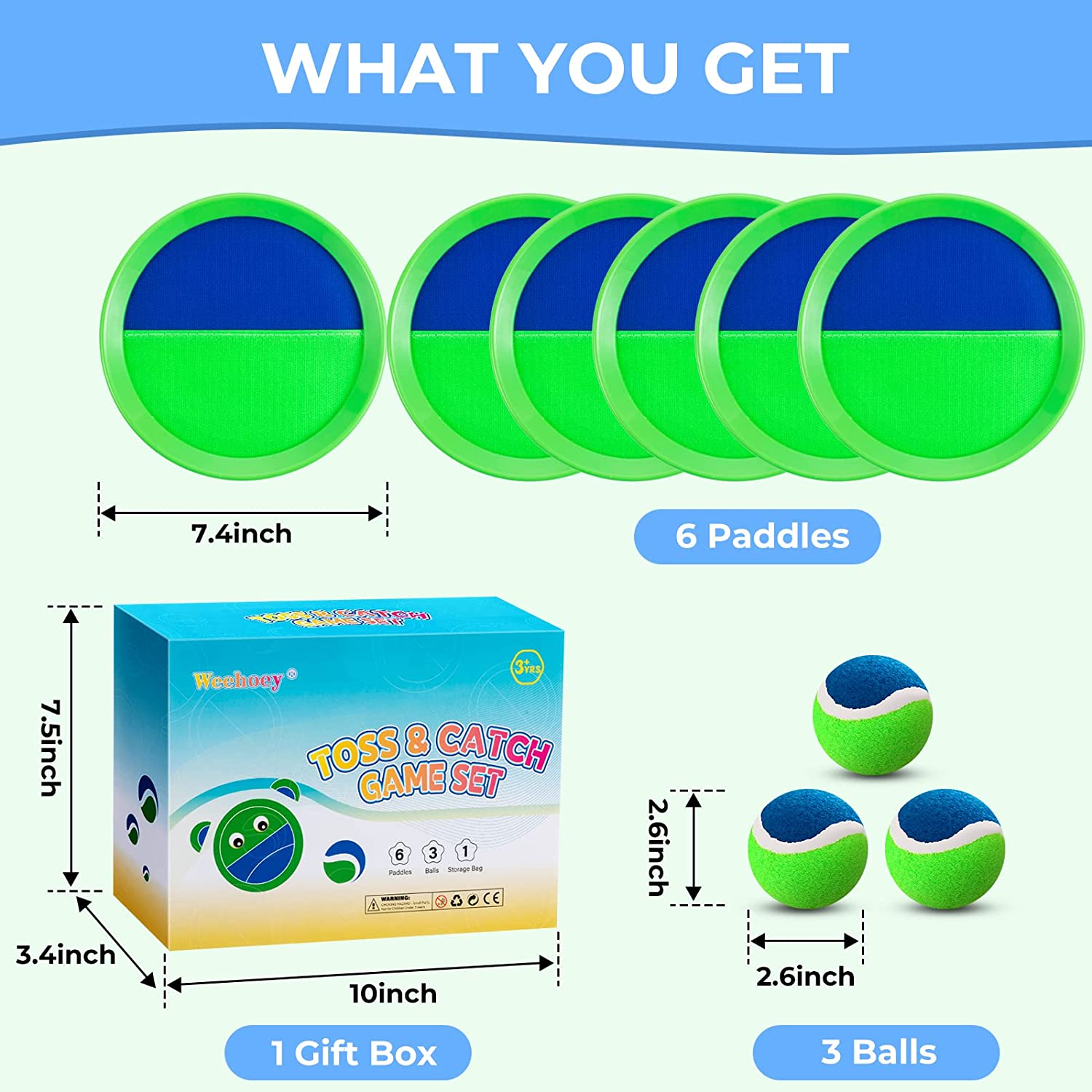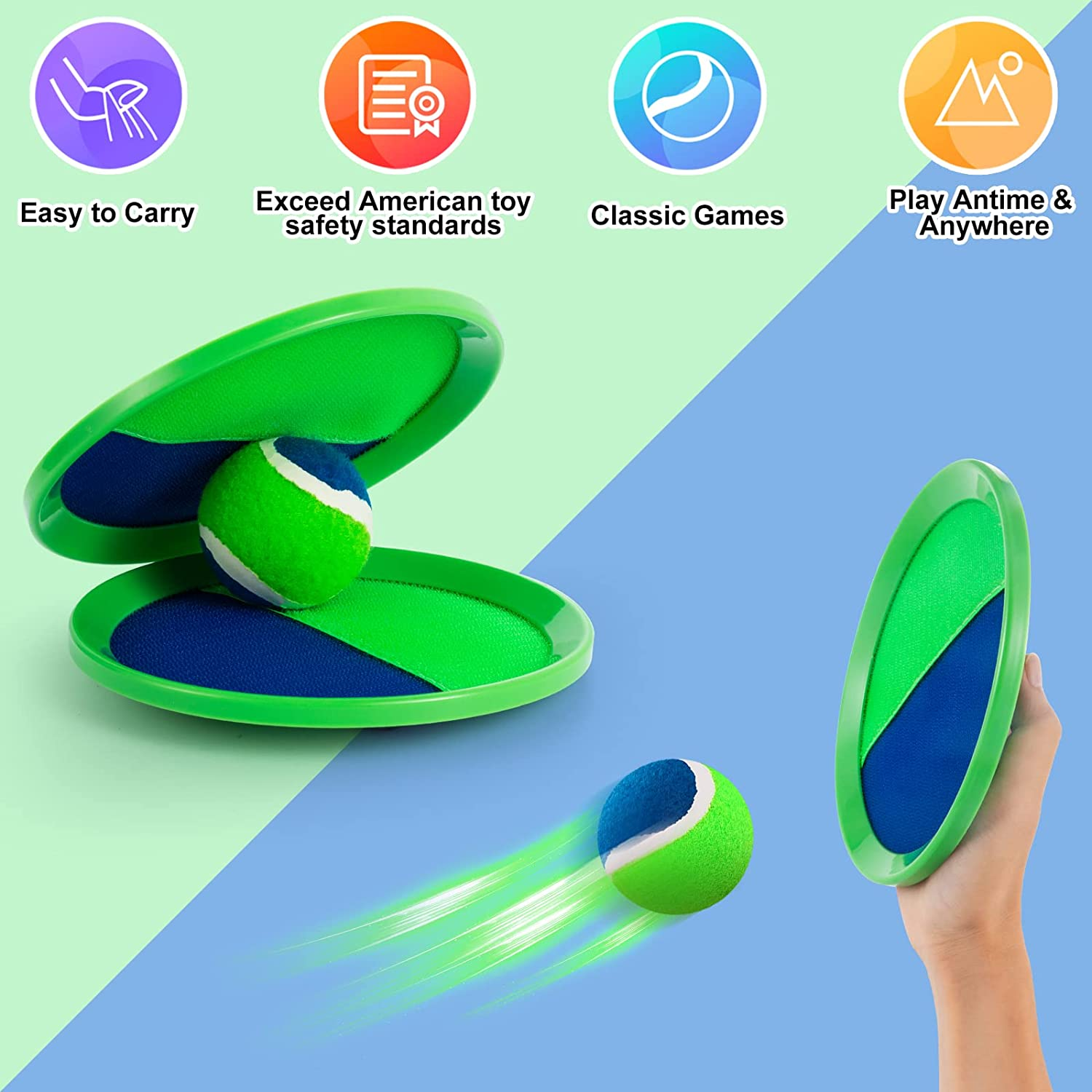 Kids Toys - Beach Toys - Outdoor Games for Kids, Toss and Catch Ball Set with 6