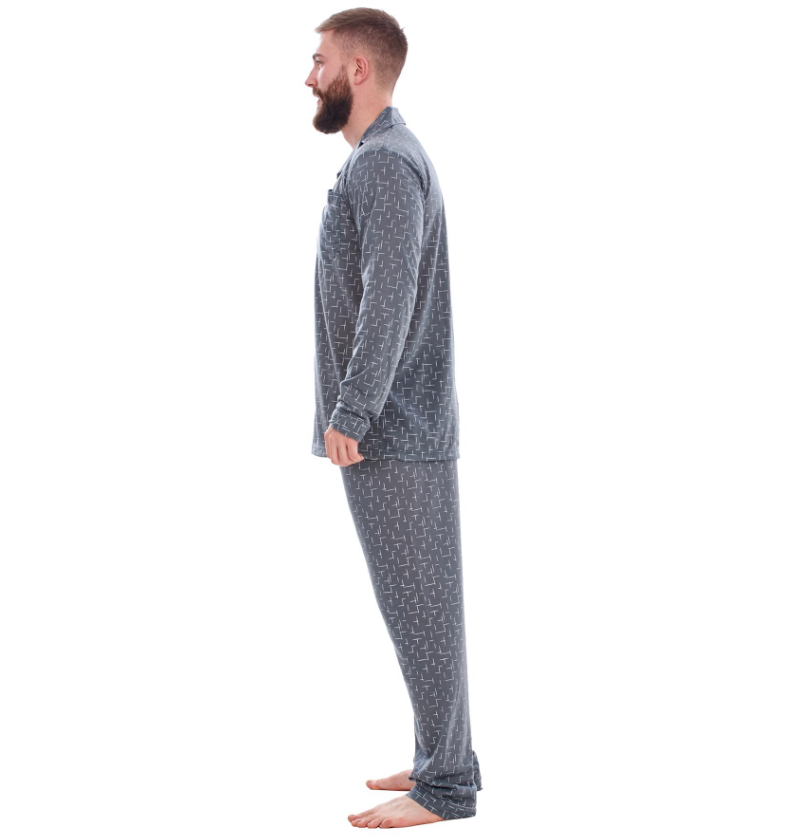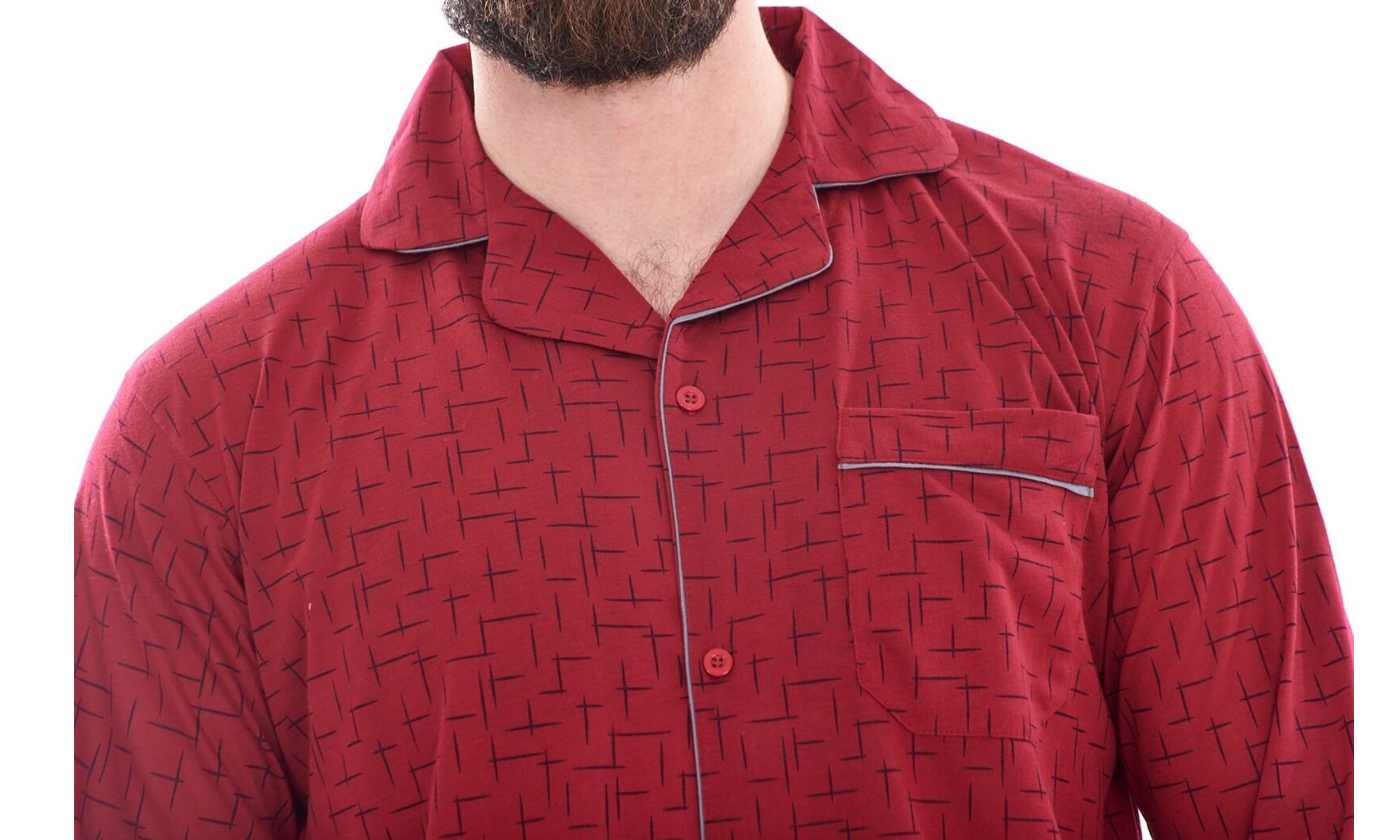 • Mens Classic Pyjama Sets Printed Rich Cotton Long Sleeve Nightwear Soft PJ's