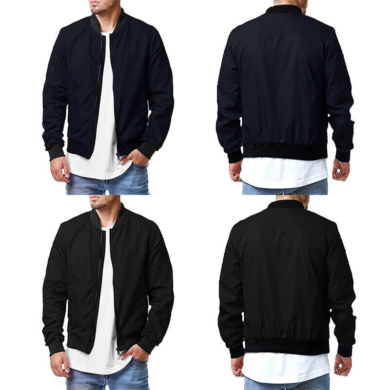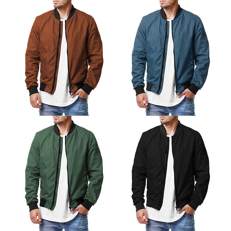 Men's Regular Fit Baseball Jacket Coat Casual Pockets Crew Neck Bomber Outwear/,