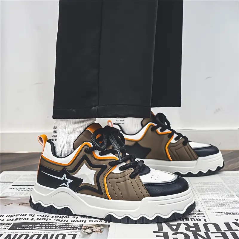 Men's Trendy Solid Street Style Platform Skate Shoes, Comfy Non Slip Lace Up Casual Sneakers For Men's Outdoor Activities, Men's Footwear
