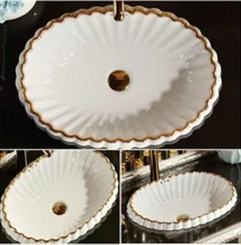 OVAL SEMI COUNTER WASH BASIN WITH OVERFLOW BATHROOM SINK WHITE PORCELAIN CERAMIC