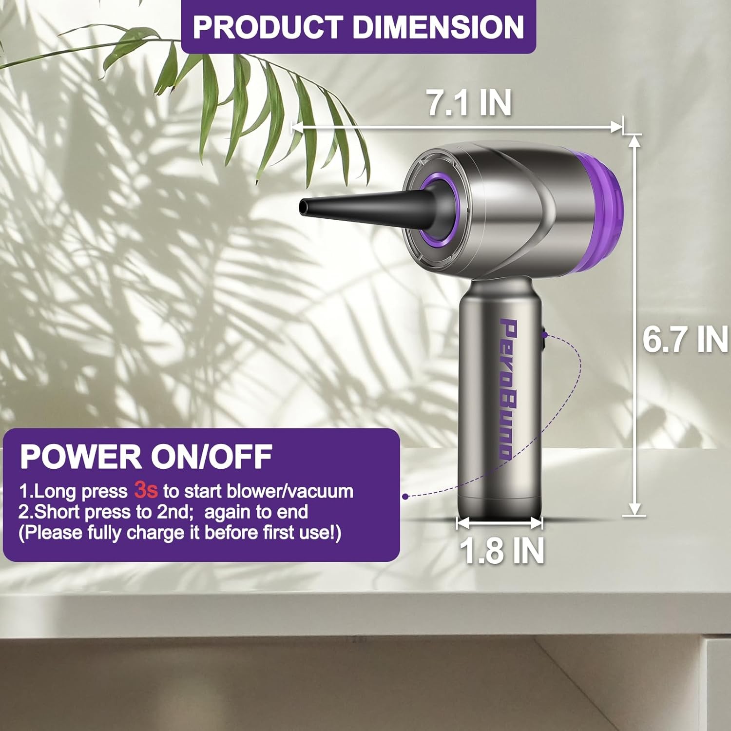 PeroBuno Air Duster for Computers, Mini Vacuum 2-in-1, 160000RPM Compressed Air, 2 Gear Brushless Motor Rechargeable Air Blower - Cordless Canned Air - Keyboard Cleaner