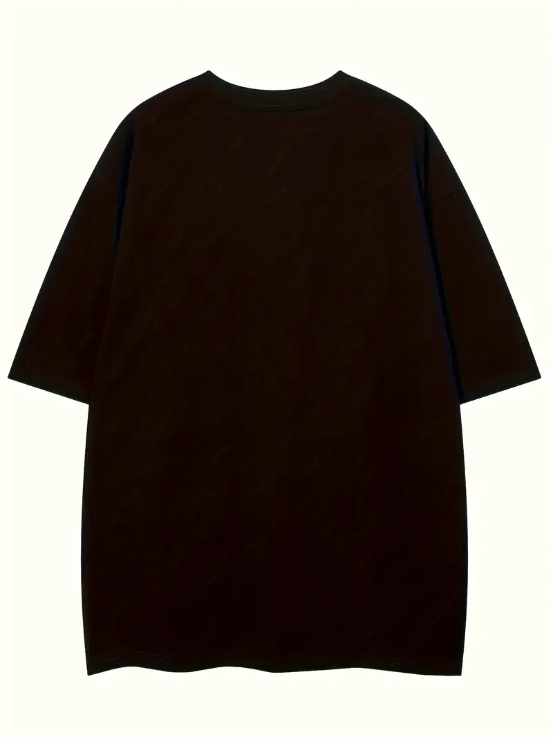 Retro Letter And Striped Men's Loose Casual Cotton Comfy Short Sleeve Crew Neck T-shirt, Summer Outdoor Sports