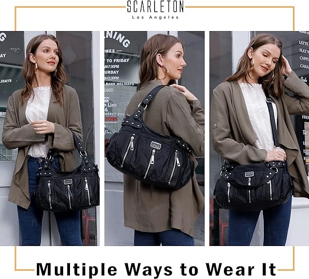 Scarleton Purses for Women Large Hobo Bags Washed Vegan Leather Shoulder Bag Satchel Tote Top Handle Handbags, H1292
