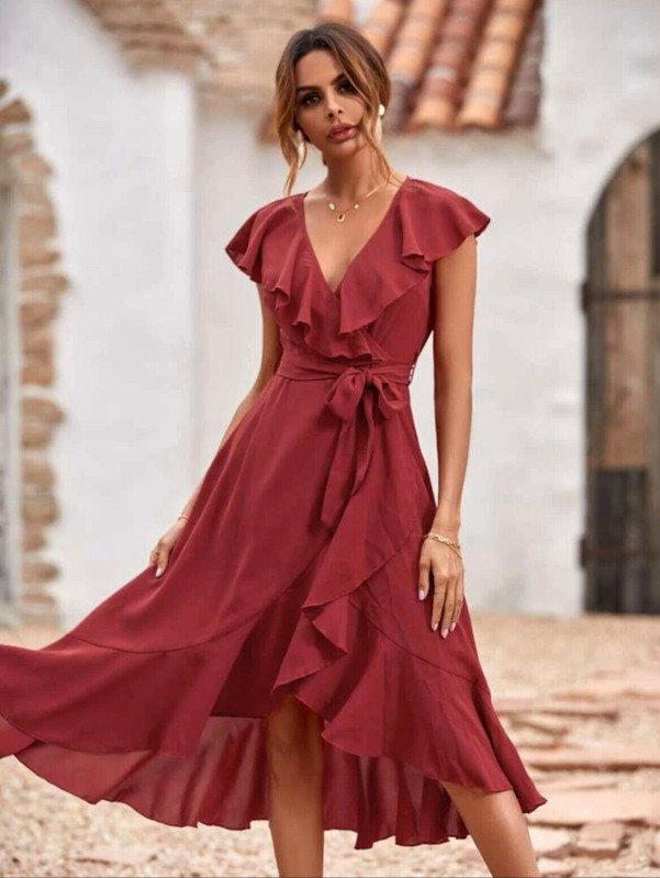 https://luxury-shop.xyz/product/solid-ruffle-trim-belted-wrap-dress
