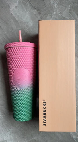 Starbucks Tumbler Pink Green Gradient Diamond Studded Cup 24oz Straw Cup 710ml