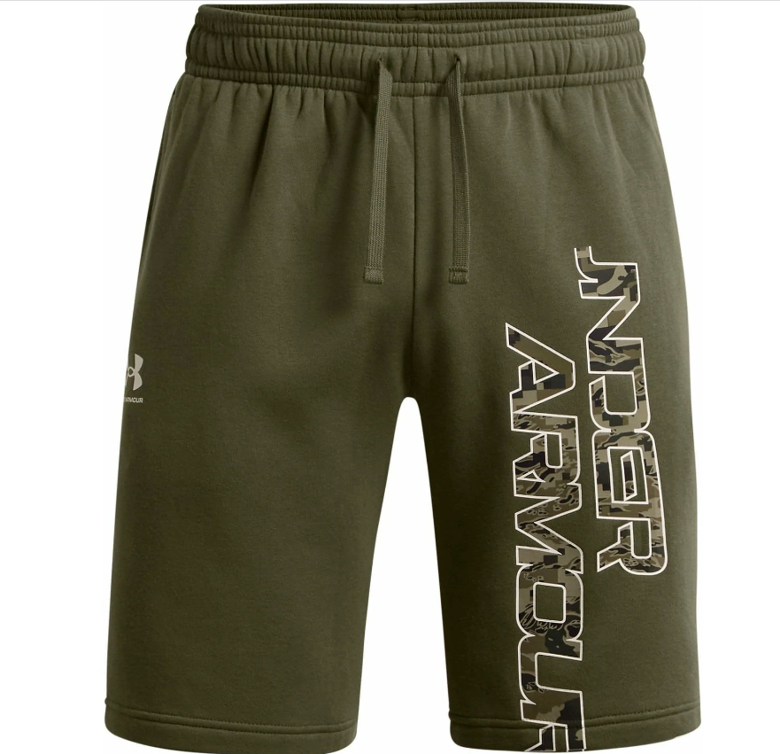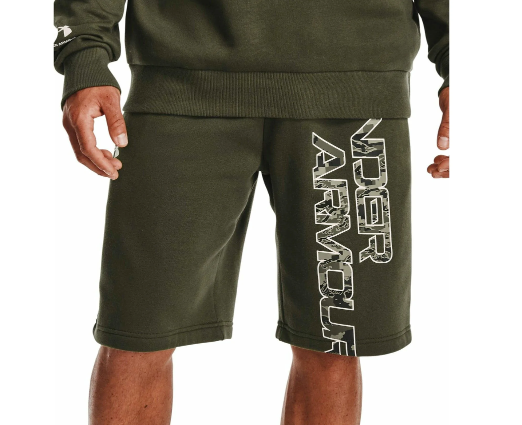 Under Armour Mens Rival Fleece Camo Script Training Shorts - Green