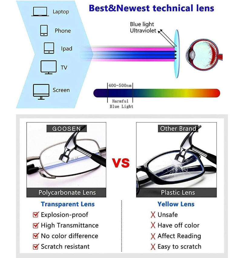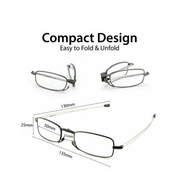 Unisex Metal Compact Folding Anti-Blue Light Reading Glasses W/ Case UV1.0~4.0