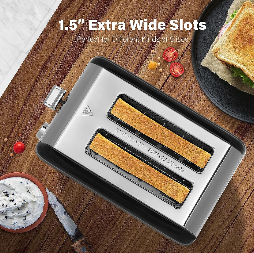 • Bread Lovers: No matter you like English muffins or Texas-style toast or bagels... you can toast them all with this toaster! The wide slots fit any type of bread and help you make your breakfast easily and variously.