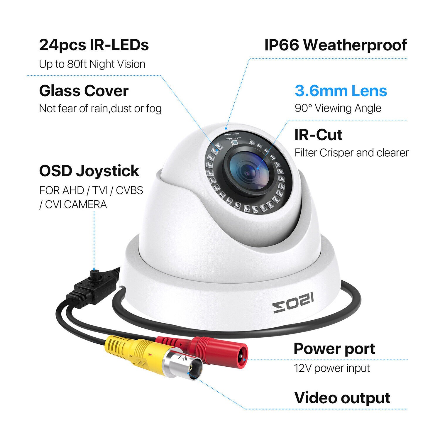 ZOSI 2MP 1080P HD 4in1 Home Dome Security Camera Night Vision Outdoor CCTV IP66